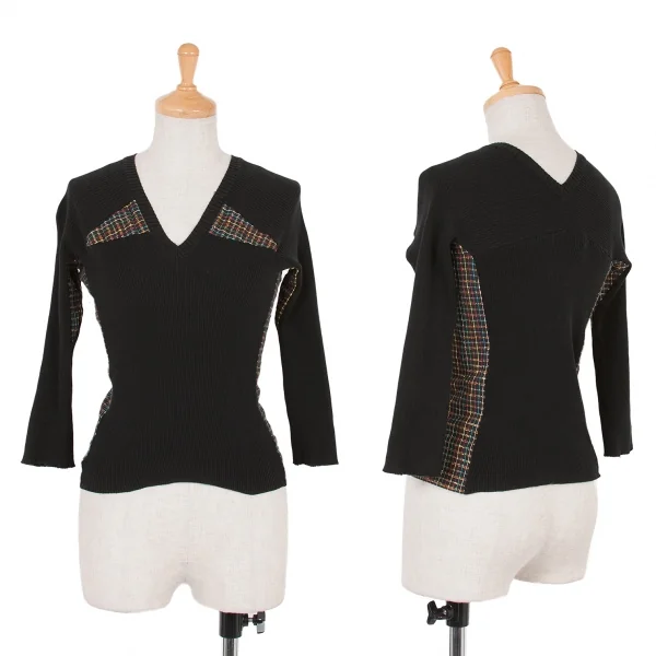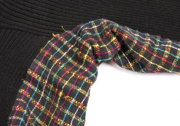 【SALE】ジュンヤワタナベ コムデギャルソンJUNYA WATANABE COMME des GARCONS ラメチェック切り替えリブニット 黒他M位