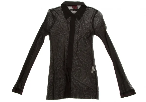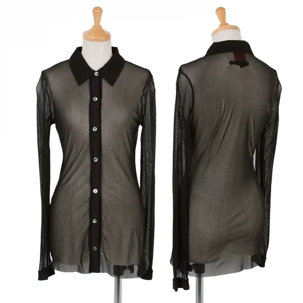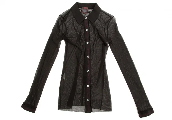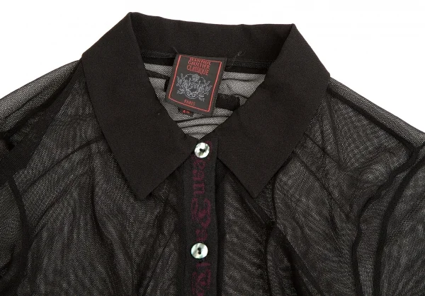 ジャンポールゴルチエ クラシックJean Paul GAULTIER CLASSIQUE ロゴリブ切替パワーネットシャツ 黒紫40
