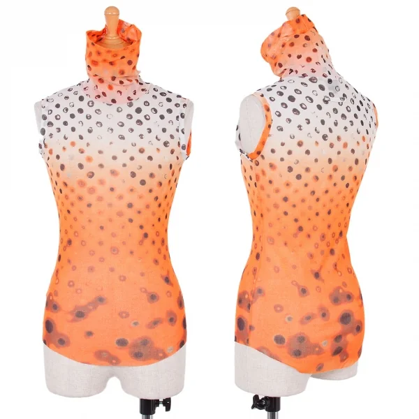 ジャンポールゴルチエ ファムJean Paul GAULTIER FEMME グラデドットプリントハイネックノースリーブ オレンジ黒白40