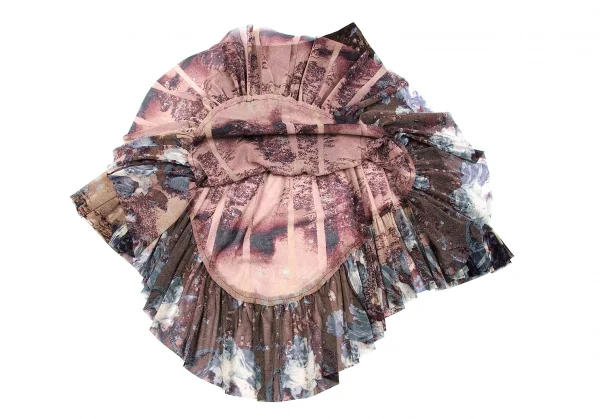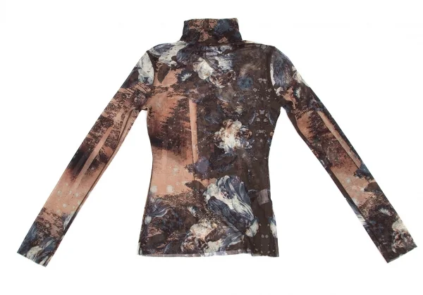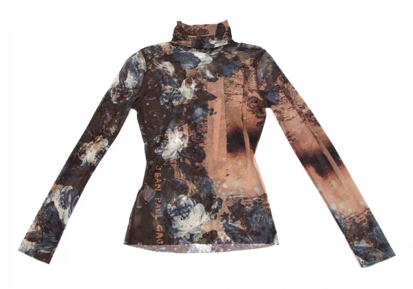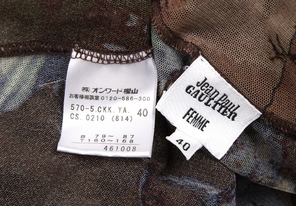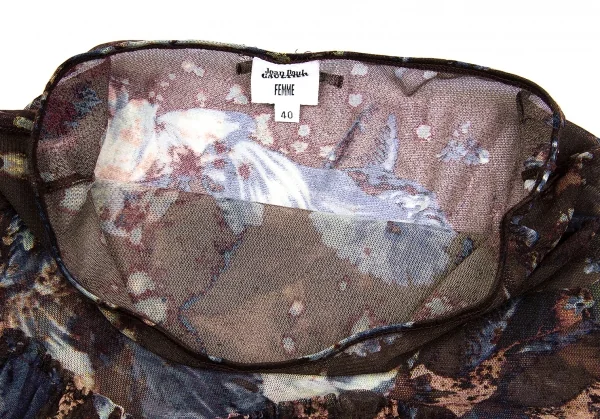 ジャンポールゴルチエファムJean Paul GAULTIER FEMME フラワープリントパワーネットセットアップスーツ 茶青他40