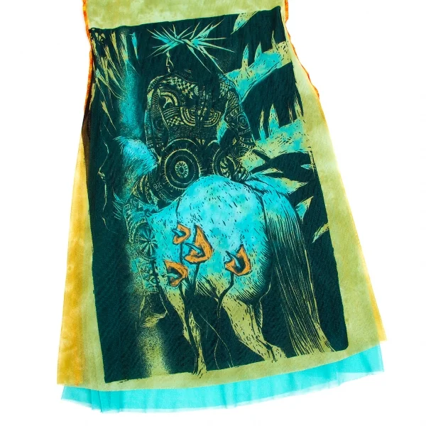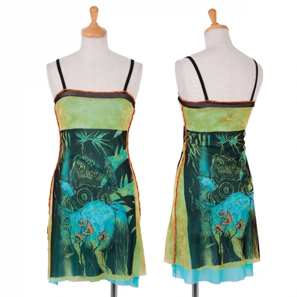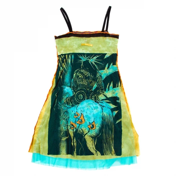 ジャンポールゴルチエファムJean Paul GAULTIER FEMME ネイティブプリントパワーネットレイヤードキャミソール 黄緑他40