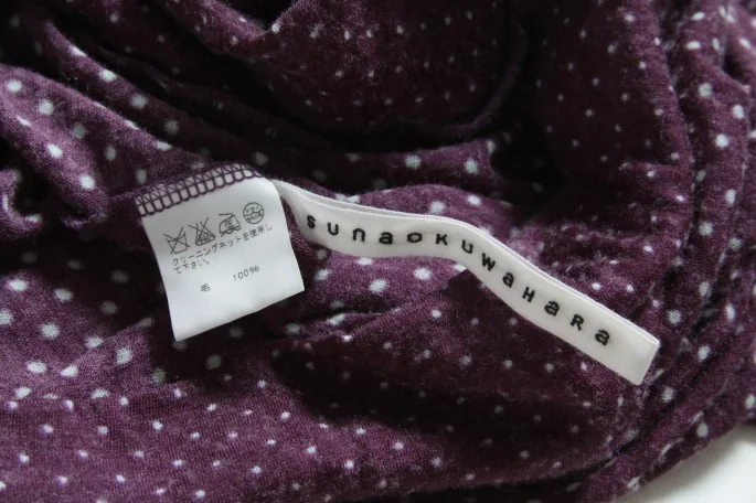 スナオクワハラsunao kuwahara 七分袖ドットウールカットソーM パープルM