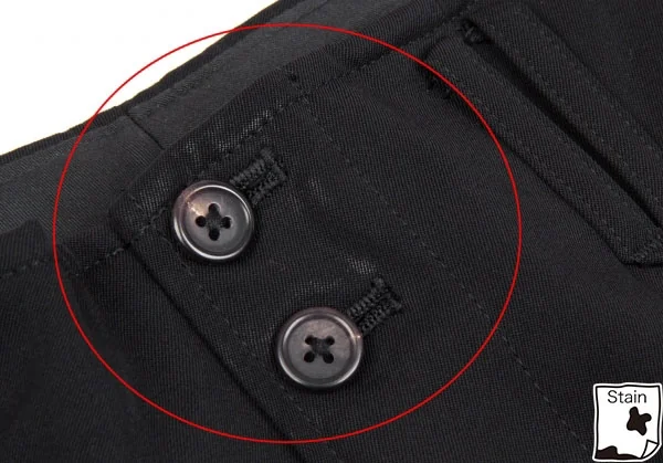 ウエスト、裾、ヒップにテカリがあります(写真参照)目立ったシミ、汚れ、ほつれ等はないです。クリーニング済み