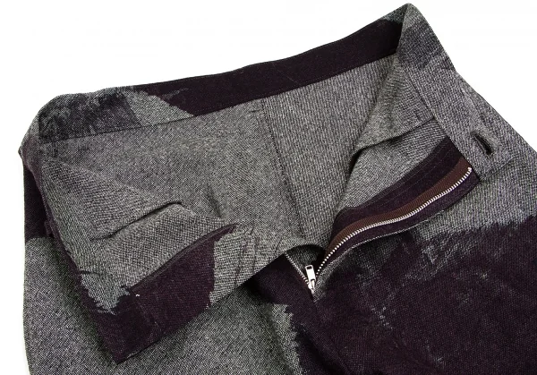 レギュレーションヨウジヤマモトREGULATION yohji yamamoto カシミヤ混ウールグラフィックサルエルパンツ グレー紫1