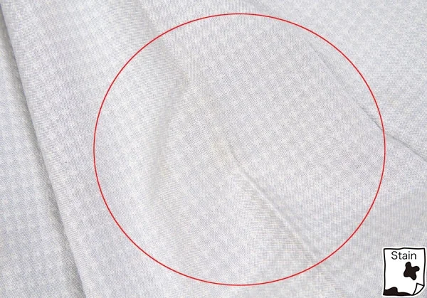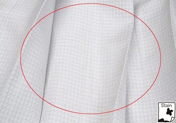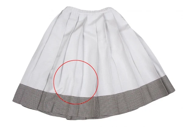 プリーツ折り目に薄汚れ、薄シミ多数あり。(写真参照)その他に目立ったほつれ等はありません。クリーニング済み。