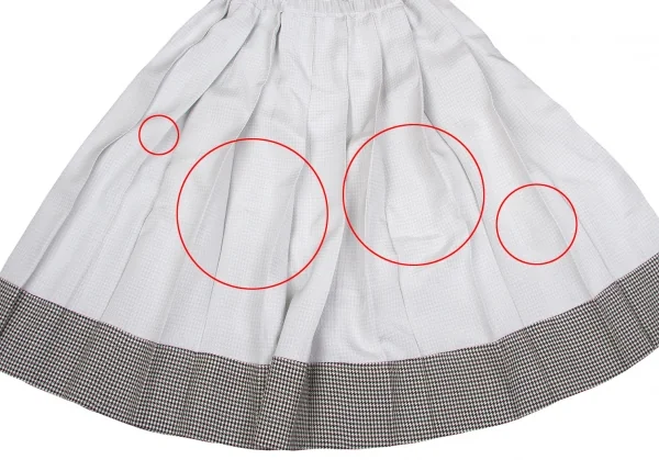 ジャケット 脇下に薄シミ、袖先にシミあり。前身頃裾に引っ掛けあり。スカート プリーツ折り目に薄汚れ、薄シミ多数あり。(写真参照)クリーニング済み。