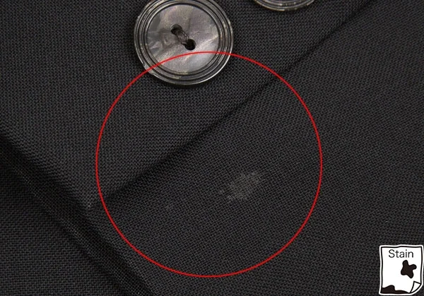 左袖先に汚れ、後身頃に引っ掛けあり(写真参照)。その他に目立ったシミ、汚れ、ほつれ等なくいい状態です。クリーニング済み