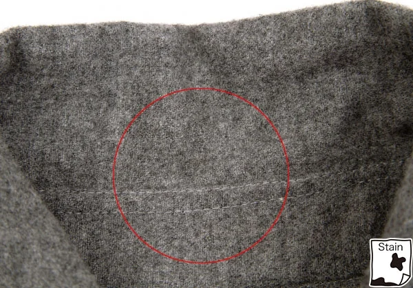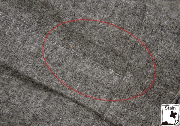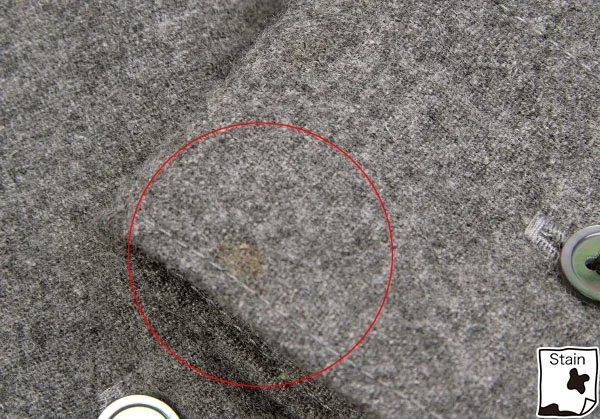 襟裏、前身頃、袖先にシミあり。(写真参照)その他に目立ったシミ、汚れ、ほつれ等なくいい状態です。クリーニング済み