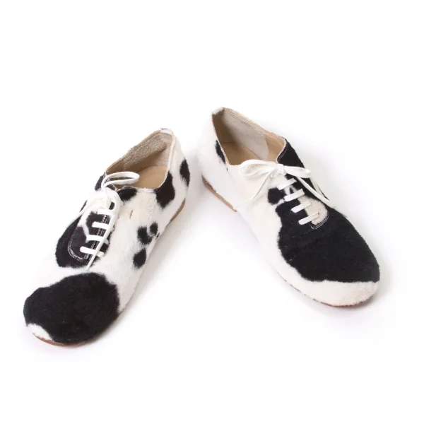 コムデギャルソンCOMME des GARCONS 起毛ホルスタイン柄フラットシューズ 白黒22.5