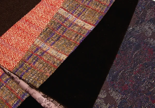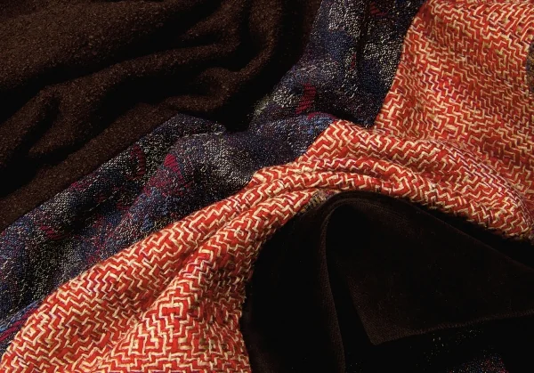 生地1 ウール63% ビスコース19% モヘヤ9% ナイロン9% 生地2 アクリル50% シルク31% ウール18% ナイロン1% 生地3 コットン68% ビスコース24% アセテート8% 生地4 ウール90% ナイロン10% 生地5 コットン68% モダール32% 裏地 ビスコース55% アセテート45%