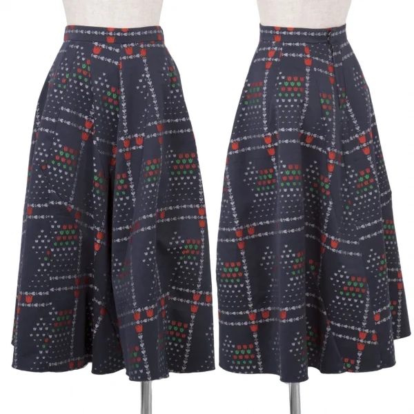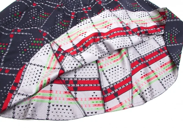 ジュンヤワタナベ コムデギャルソンJUNYA WATANABE COMME des GARCONS フラワージャガード切替デザインスカート 紺他M位