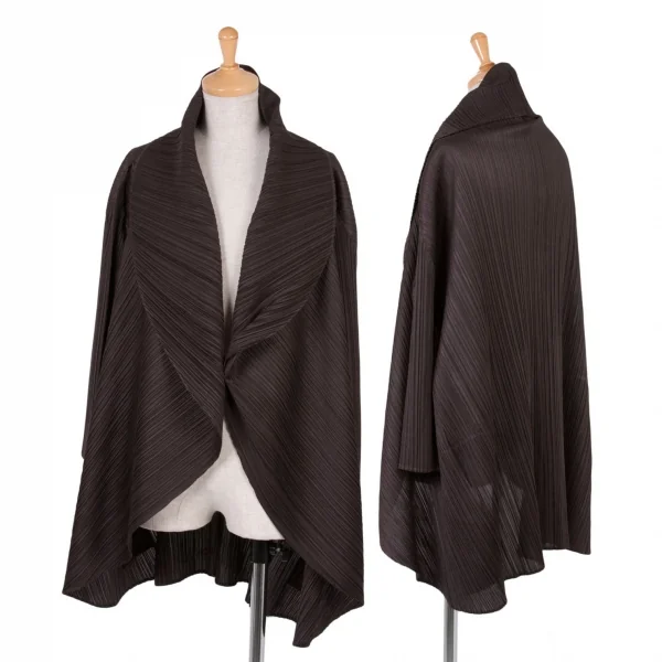 プリーツプリーズPLEATS PLEASE プリーツビッグシルエットショールカラーカーディガン チョコレート3