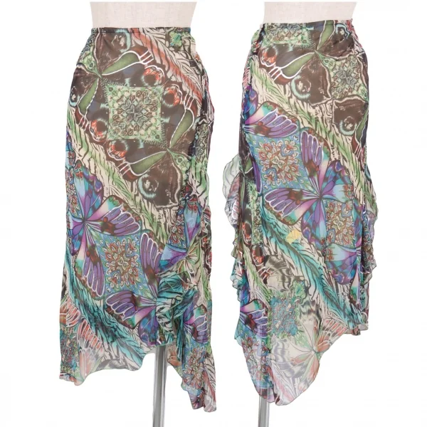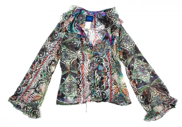 ケンゾージーンズKENZO jeans バタフライプリントシースルーフリルセットアップ グリーンマルチ40