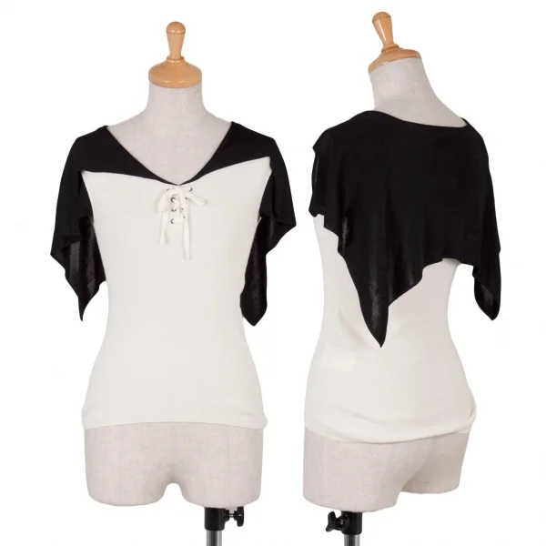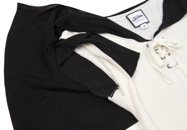 【最終値下げ】ジャンポールゴルチエ フォー セットプルミエJean Paul GAULTIER FOR SEPT PREMIERES セーラーカラーノースリーブバイカラーニット オフ黒36