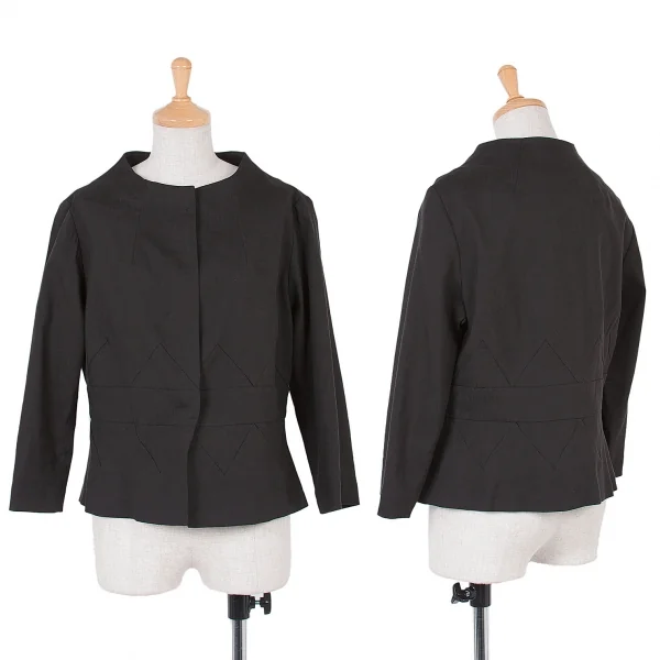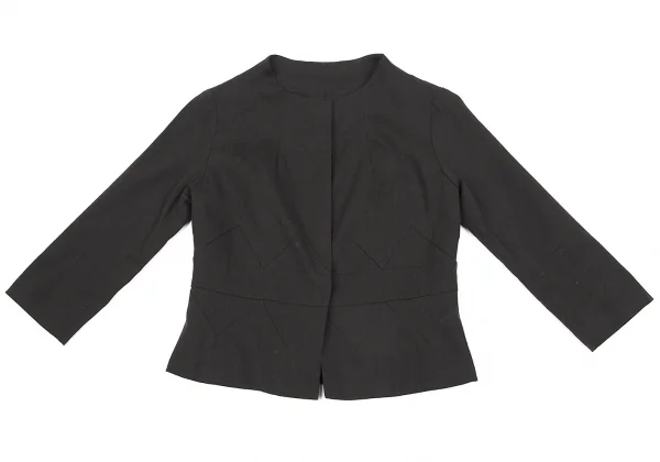 シビラSybilla リネンレーヨンノーカラースナップボタンジャケット 墨黒L
