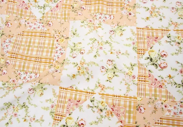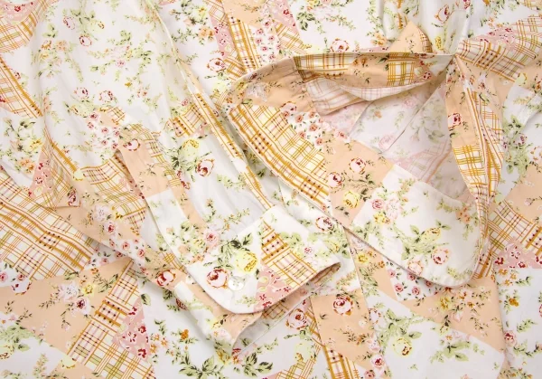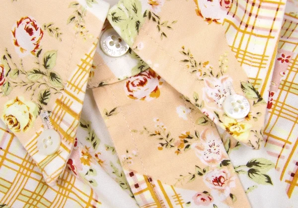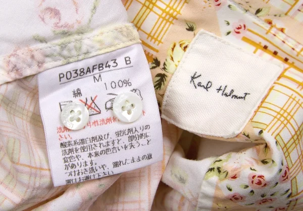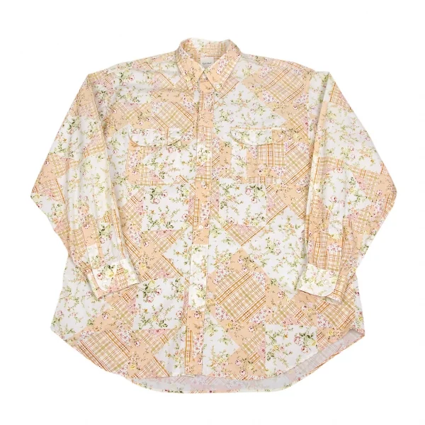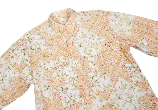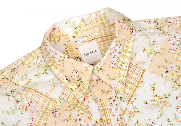 カールヘルムKarl Helmut チェックフラワーパッチワークプリントシャツ ピンクオフ他M