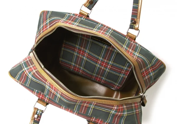 コムデギャルソンCOMME des GARCONS キャンバスタータンチェックハンドバッグ 緑赤他