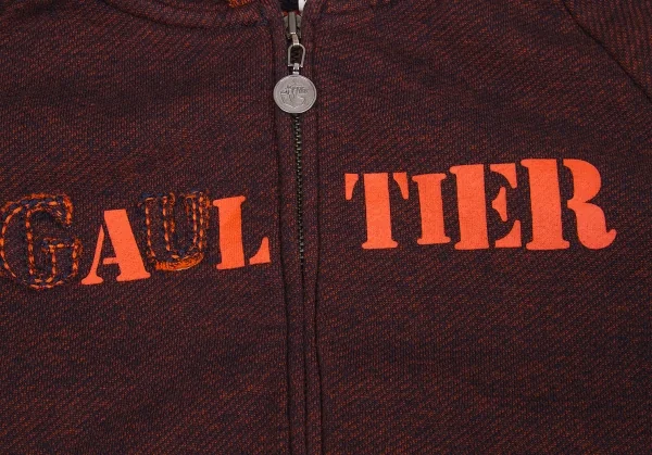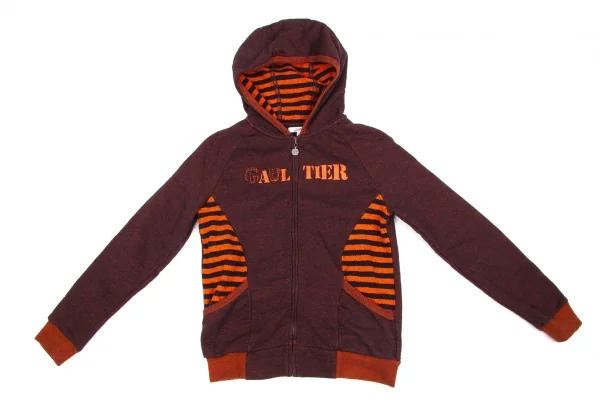 【最終値下げ】ジュニアゴルチエJUNIOR GAULTIER ボーダー切替ロゴプリントパーカー 紺オレンジ12a