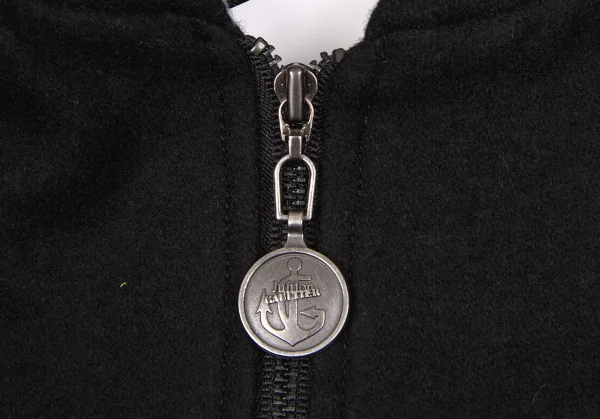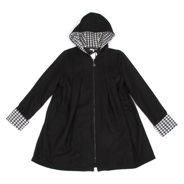 ジュニアゴルチエJUNIOR GAULTIER 千鳥フェイクハラコ切替フーデッドコート 黒白16A