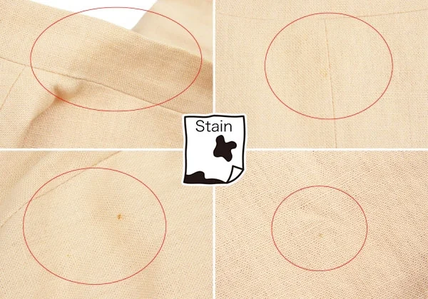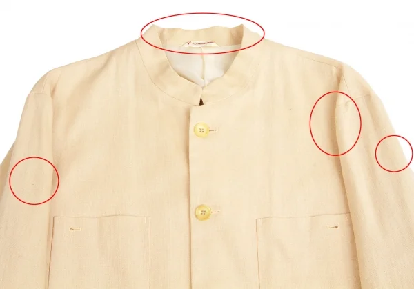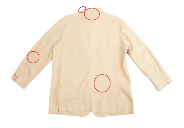 首元、袖口、裾汚れ、点シミ多数あり(写真参照)。その他に目立ったシミ、汚れ、ほつれ等なくいい状態です。クリーニング済み