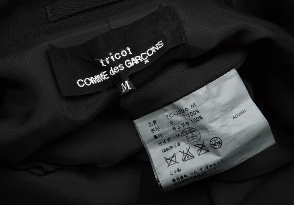 トリコ コムデギャルソンtricot COMME des GARCONSウールギャバ製品染めテーラードジャケット 黒M