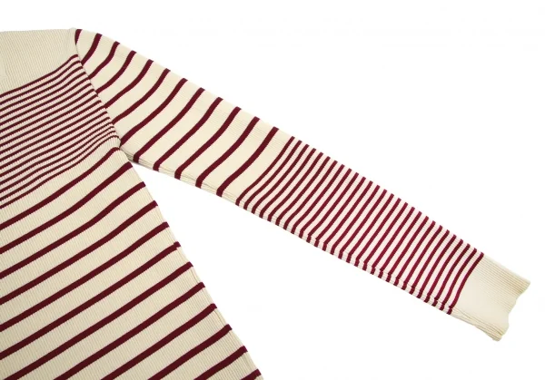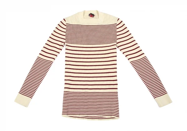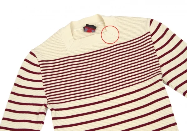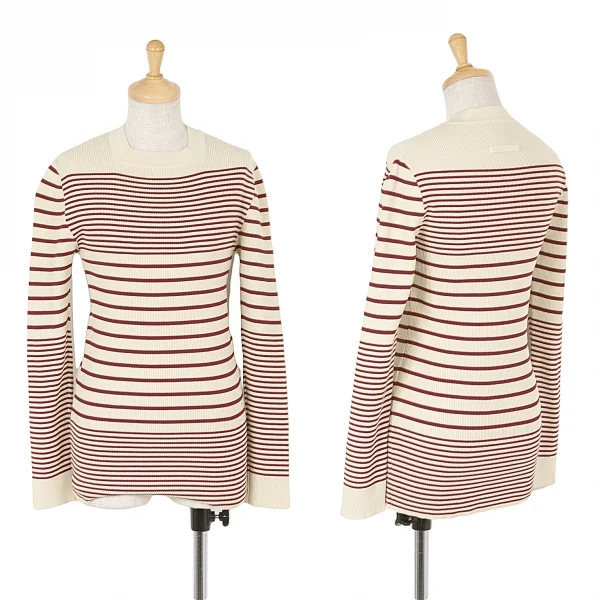 【SALE】ジャンポールゴルチエ クラシックJean Paul GAULTIER CLASSIQUE スクエアネックリブボーダーカットソー ベージュボルドーL位