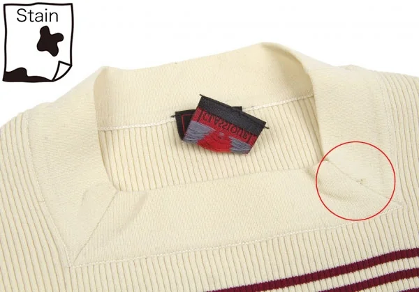 首元点シミ、身頃糸引きあり(写真参照)。その他に目立ったシミ、汚れ、ほつれ等なくいい状態です。クリーニング済み