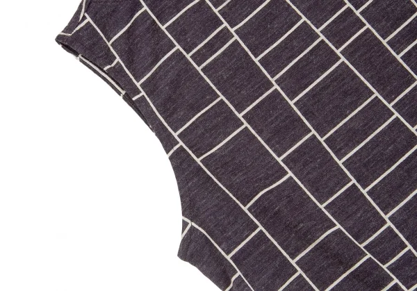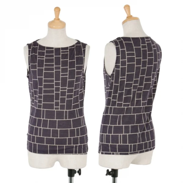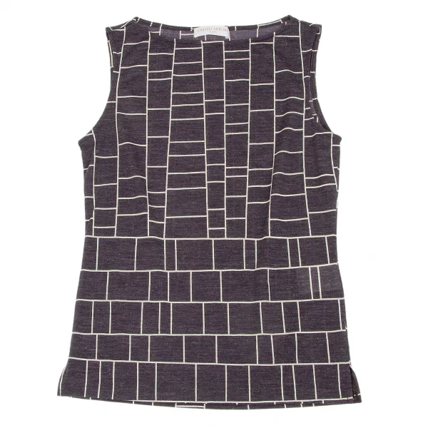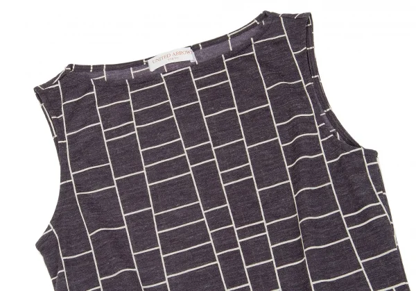 【SALE】ユナイテッドアローズUNITED ARROWS ポリウール格子チェックノースリーブトップス 紫ベージュS位