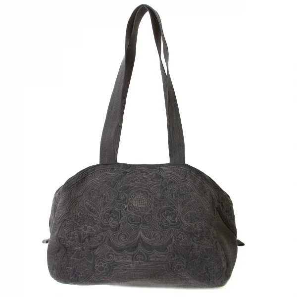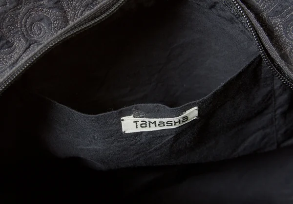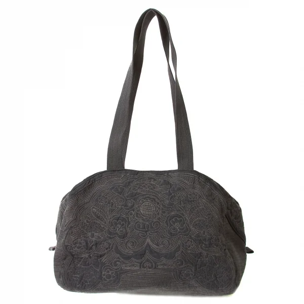 イッセイミヤケ ハートタマシャISSEY MIYAKEHaaTTaMaSHa ネイティブステッチワークボストンバッグ チャコールベージュ