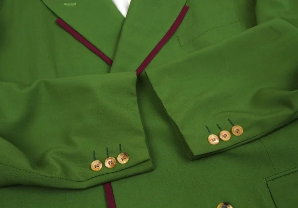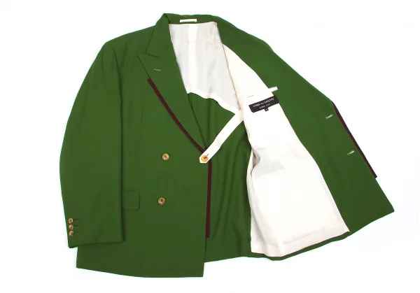 コムデギャルソン オムプリュスCOMME des GARCONS HOMME PLUS 前立てデザイン4Bウールダブルジャケット 緑M