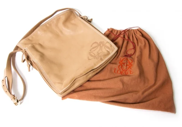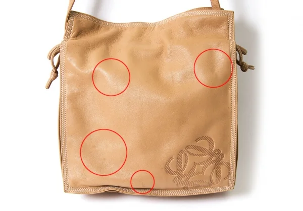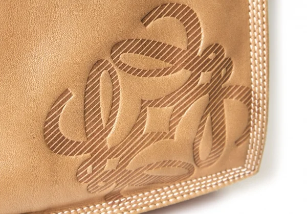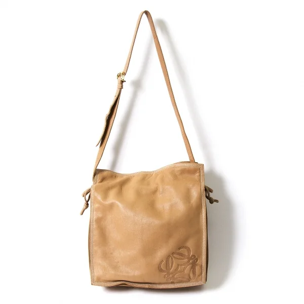 ロエベLOEWE ロゴ型押しレザーショルダーバッグ モカ