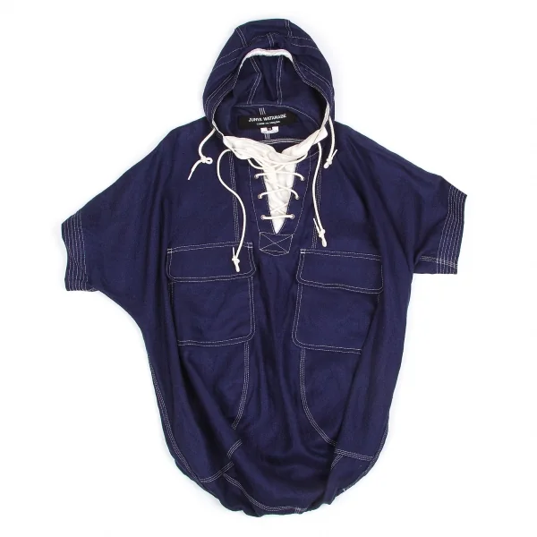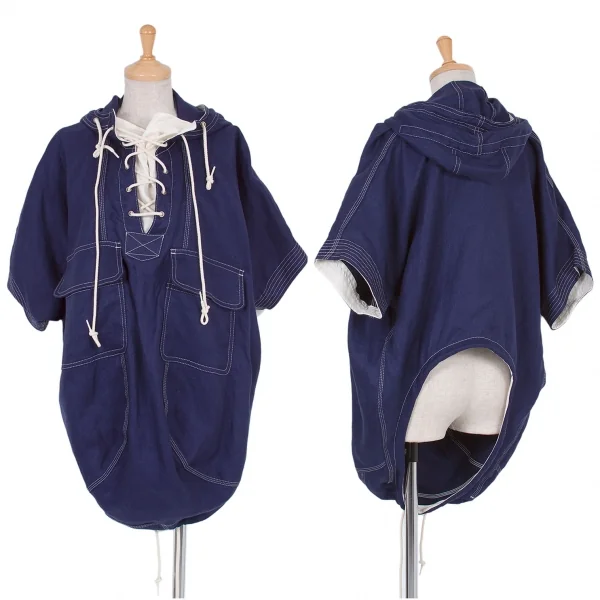 ジュンヤワタナベ コムデギャルソンJUNYA WATANABE COMME des GARCONS リネンプルオーバーパーカー 青XS