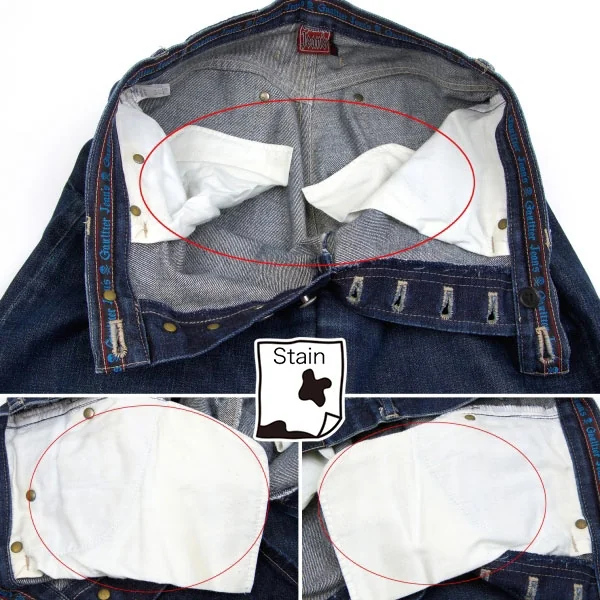 ポケット袋布に汚れあり。股下、膝に擦れあり。ロールアップ跡 擦れあり。(写真参照)その他に目立ったシミ、汚れ、ほつれ等なくいい状態です。クリーニング済み