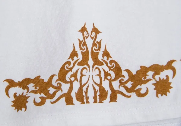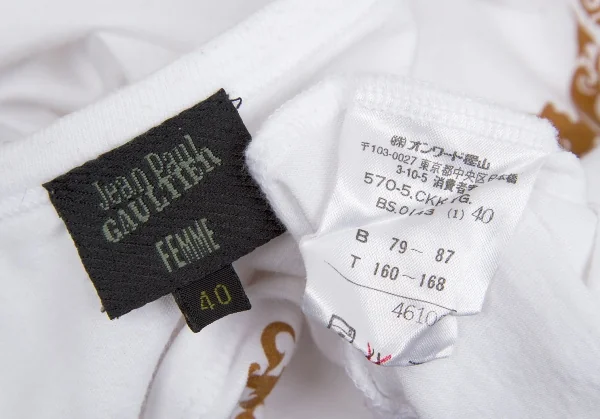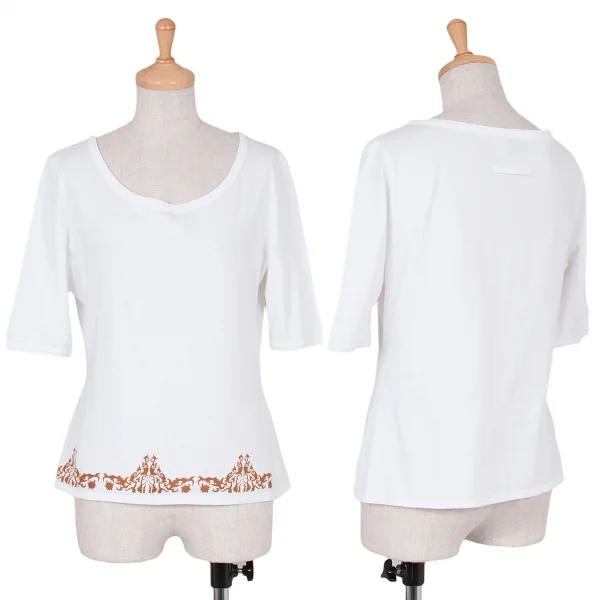 【最終値下げ】ジャンポールゴルチエファムJean Paul GAULTIER FEMME 裾トライバルプリントTシャツ 白茶40