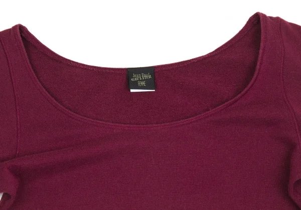 【SALE】ジャンポールゴルチエファムJean Paul GAULTIER FEMME ロゴジャガードゴム切替カットソー ワイン黒グレーM