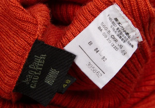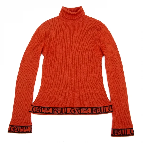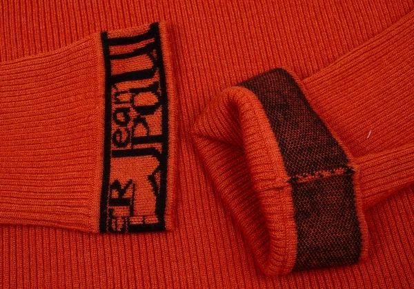 ジャンポールゴルチエオムJean Paul GAULTIER HOMME ロゴジャガードゴム切替ハイネックリブニット オレンジ黒48