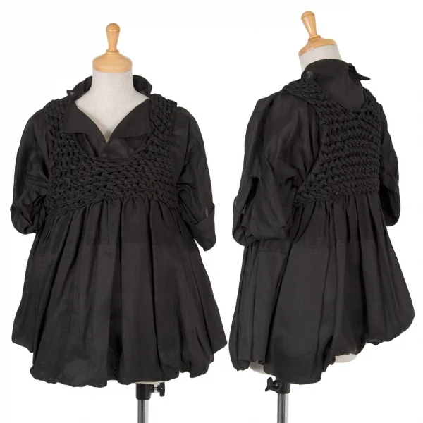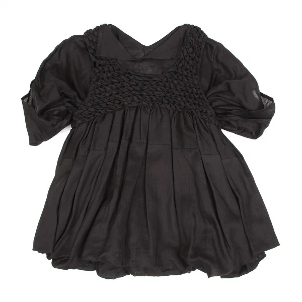 ジュンヤワタナベ コムデギャルソンJUNYA WATANABE COMME des GARCONS 編み込みデザインリネンチュニック 黒S