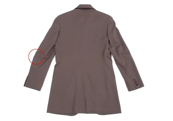 左脇下に引っ掛け、右袖先に汚れ、後ろ左袖に引っ掛けあり(写真参照)。その他に目立ったシミ、汚れ、ほつれ等なくいい状態です。クリーニング済み
