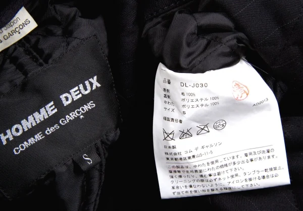コムデギャルソンオムドゥCOMME des GARCONS HOMME DEUX 中綿キルトストライプジャケットセットアップスーツ 濃紺S