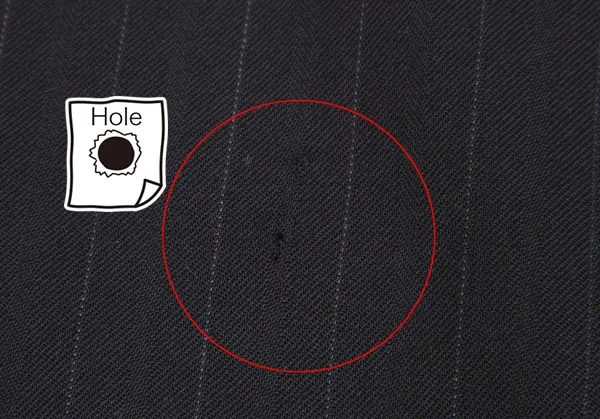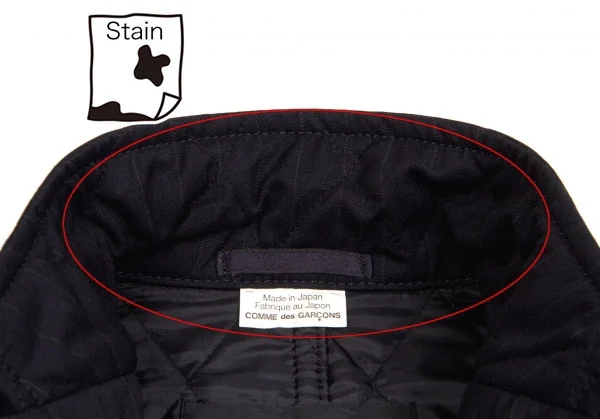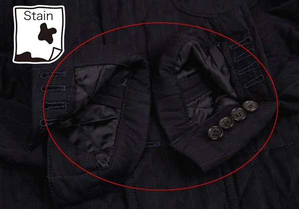 ジャケット 襟裏、右袖、袖裏に薄汚れあり。パンツ 右足に穴あり(写真参照)。目立ったシミ、汚れ、ほつれ等なくいい状態です。クリーニング済み