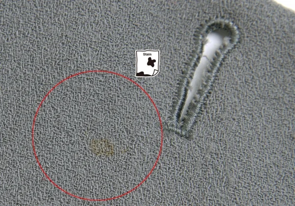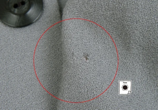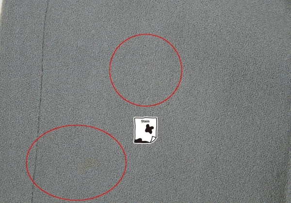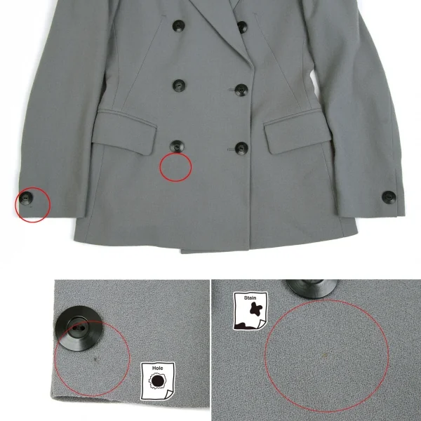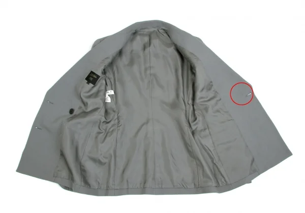 ジャケット 袖に穴あり。前身頃、見返しにシミあり。 パンツ 前に薄シミあり(写真参照)。(写真参照)クリーニング済み。