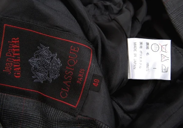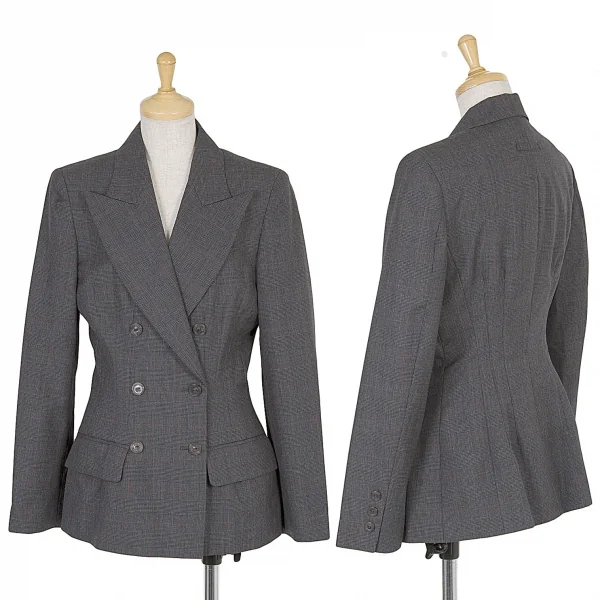 ジャンポールゴルチエ クラシックJean Paul GAULTIER CLASSIQUE ウールグレンチェックダブルセットアップスーツ グレー40