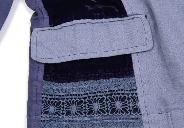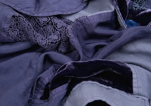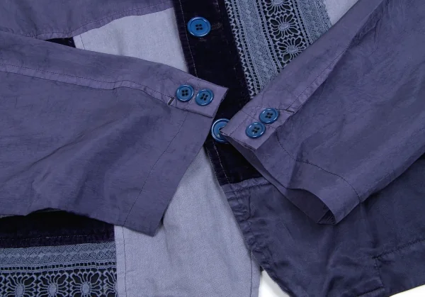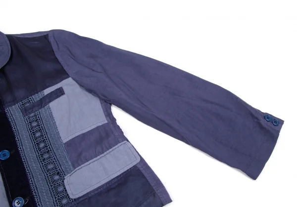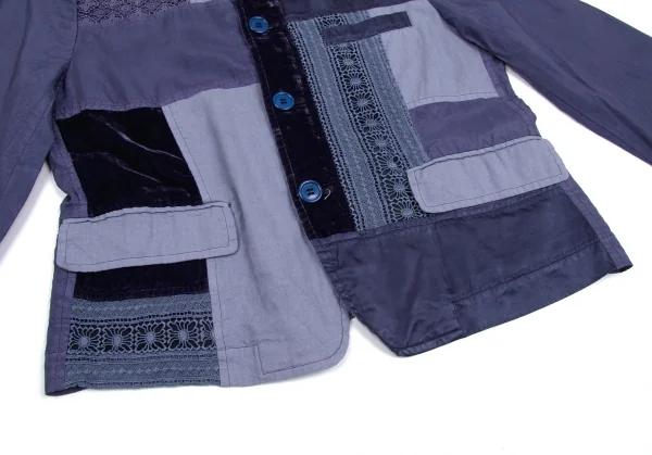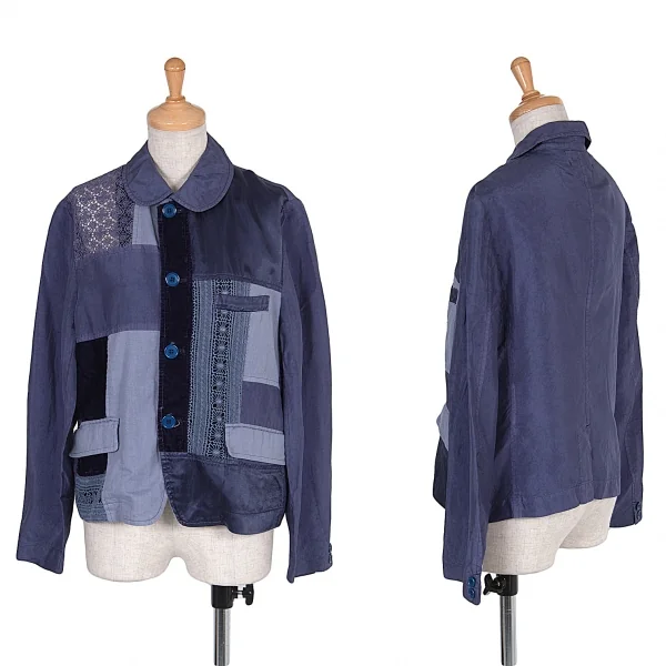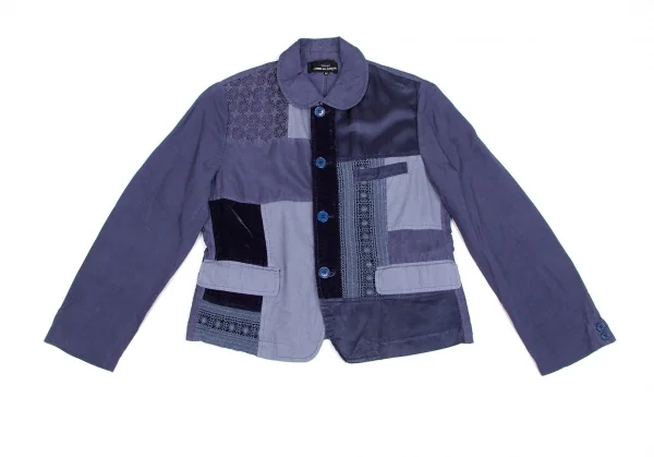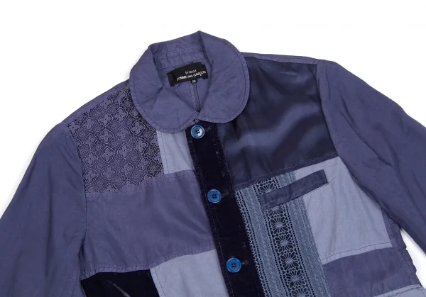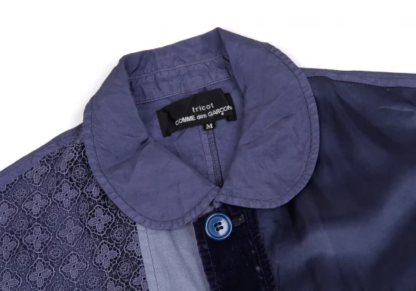 トリココムデギャルソンtricot COMME des GARCONS異素材パネル切替製品染めラウンドカラージャケット 青紫M