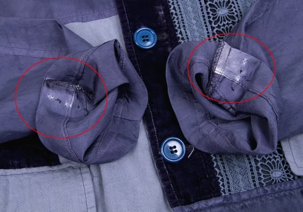 襟裏に薄汚れあろ。袖先にお直し跡、色褪せあり。(写真参照)その他に目立ったシミ、汚れ、ほつれ等なくいい状態です。クリーニング済み