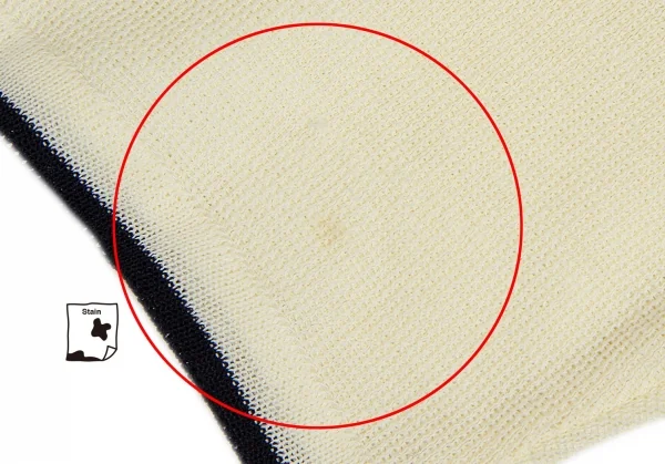 前身頃、袖後ろに染み、後ろ裾に引っかけがあります(写真参照)その他目立ったシミ、汚れ、ほつれ等はないです。クリーニング済み