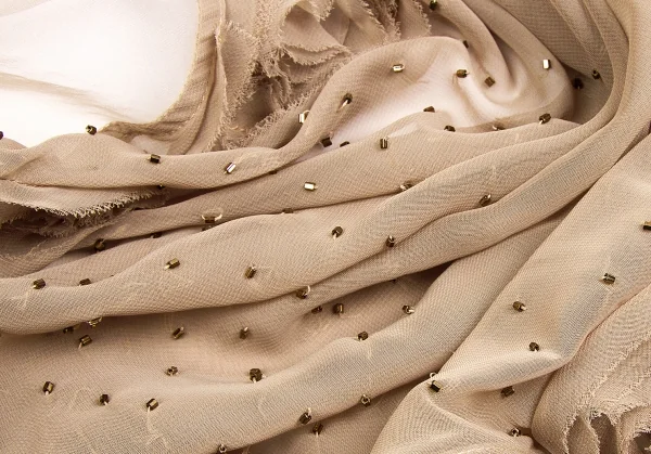 【最終値下げ】ホコモモラJocomomola ポリビーズ装飾シースルーストール モカ
