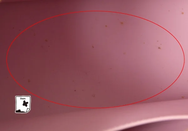 インクのようなシミ、底面やハンドル付け根等に変色があります。(写真参照)