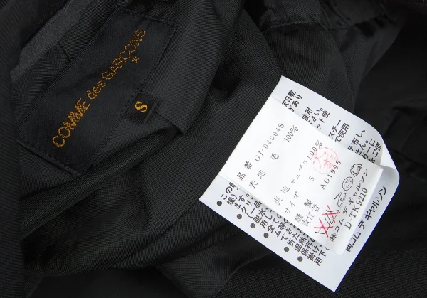コムデギャルソンCOMME des GARCONS フェイクキュロット合体3Bウールギャバジャケット 黒S