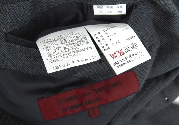 コムデギャルソンオムドゥCOMME des GARCONS HOMME DEUX ウール2Bテーラードジャケット グレーS