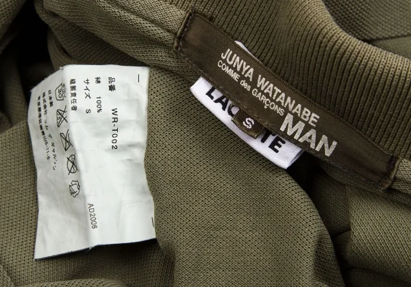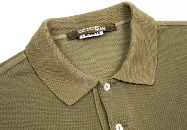 ジュンヤワタナベマンコムデギャルソン×ラコステJUNYA WATANABE MAN COMME des GARCONS×LACOSTE 製品染め鹿の子リバースデザインポロシャツ カーキS